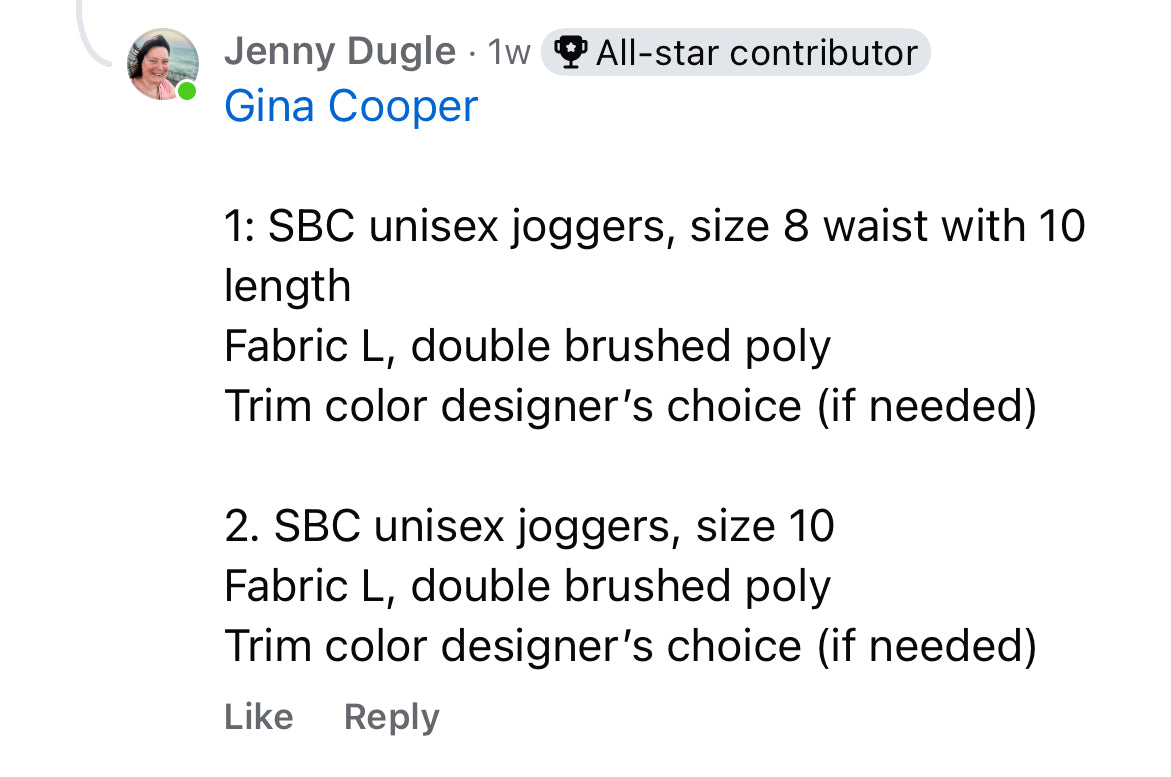 Please see the size charts in the pinned of the SBC Facebook group before purchasing. Once an item is made in the size you selected, it can not be altered, returned or refunded due to size selection error.