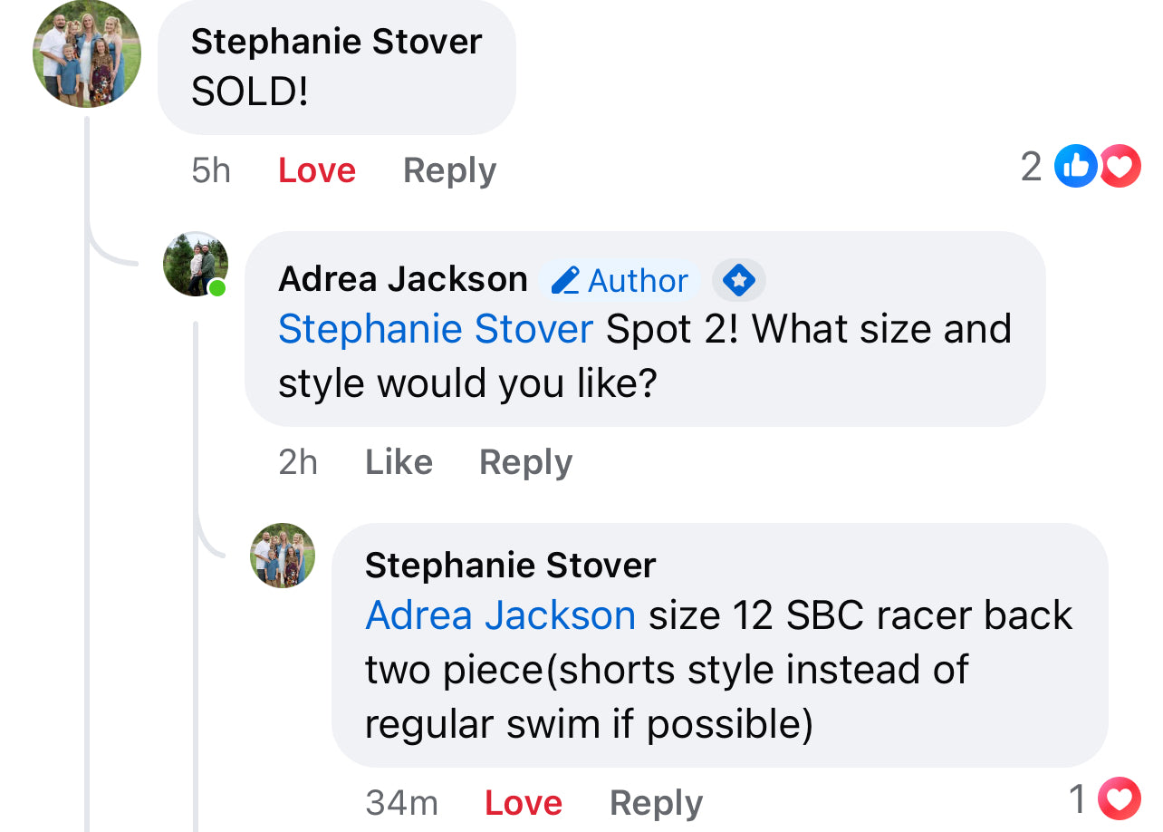 Please see the size charts in the pinned of the SBC Facebook group before purchasing. Once an item is made in the size you selected, it can not be altered, returned or refunded due to size selection error.